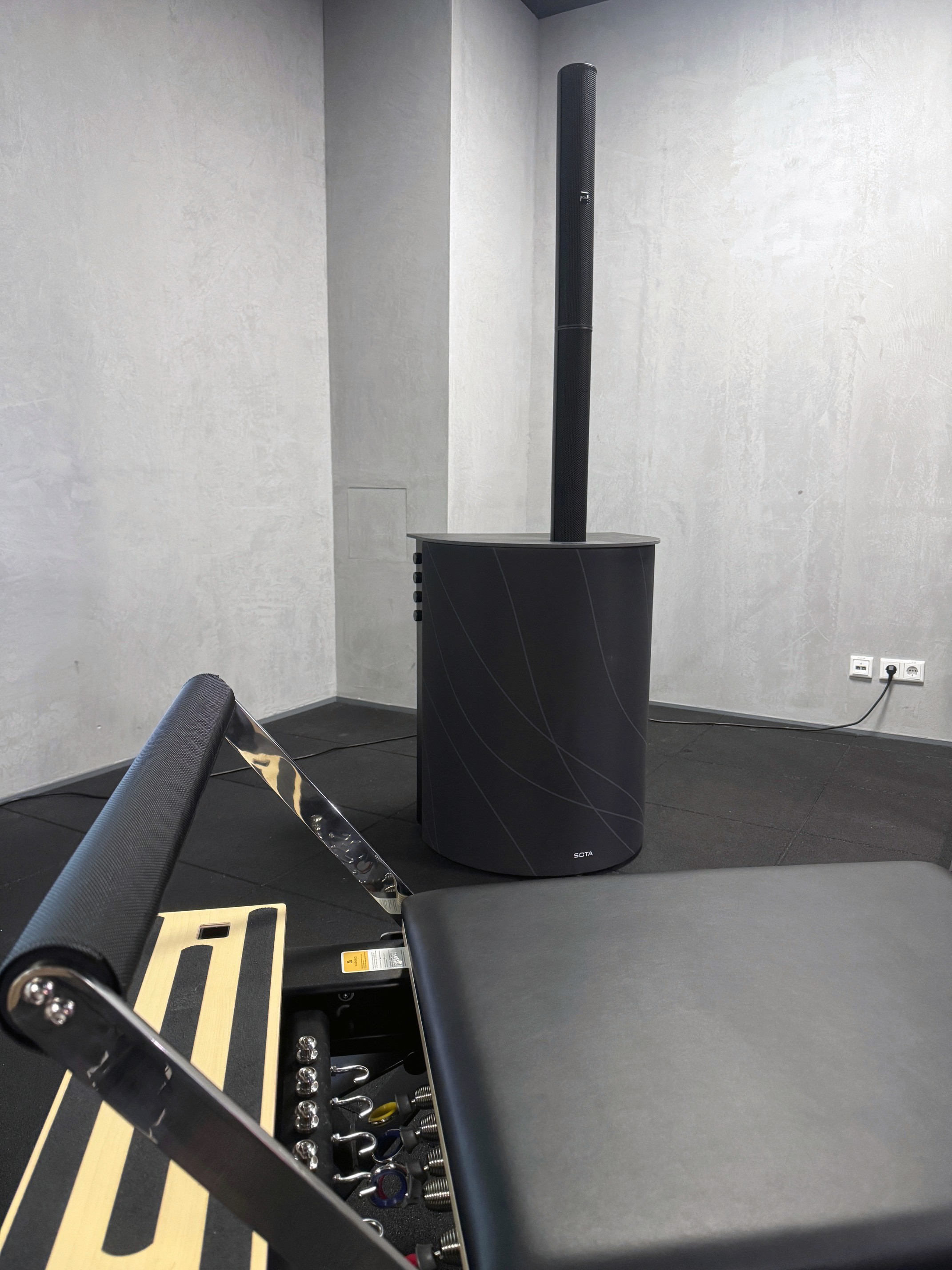 Beschalle Kurs-, Yoga- oder Functional-Flächen bis zu 200 m² mit nur einem System. Verbinde dich per Bluetooth oder AUX, lade dein Smartphone am USB-Port – auspacken, anschließen, loslegen.