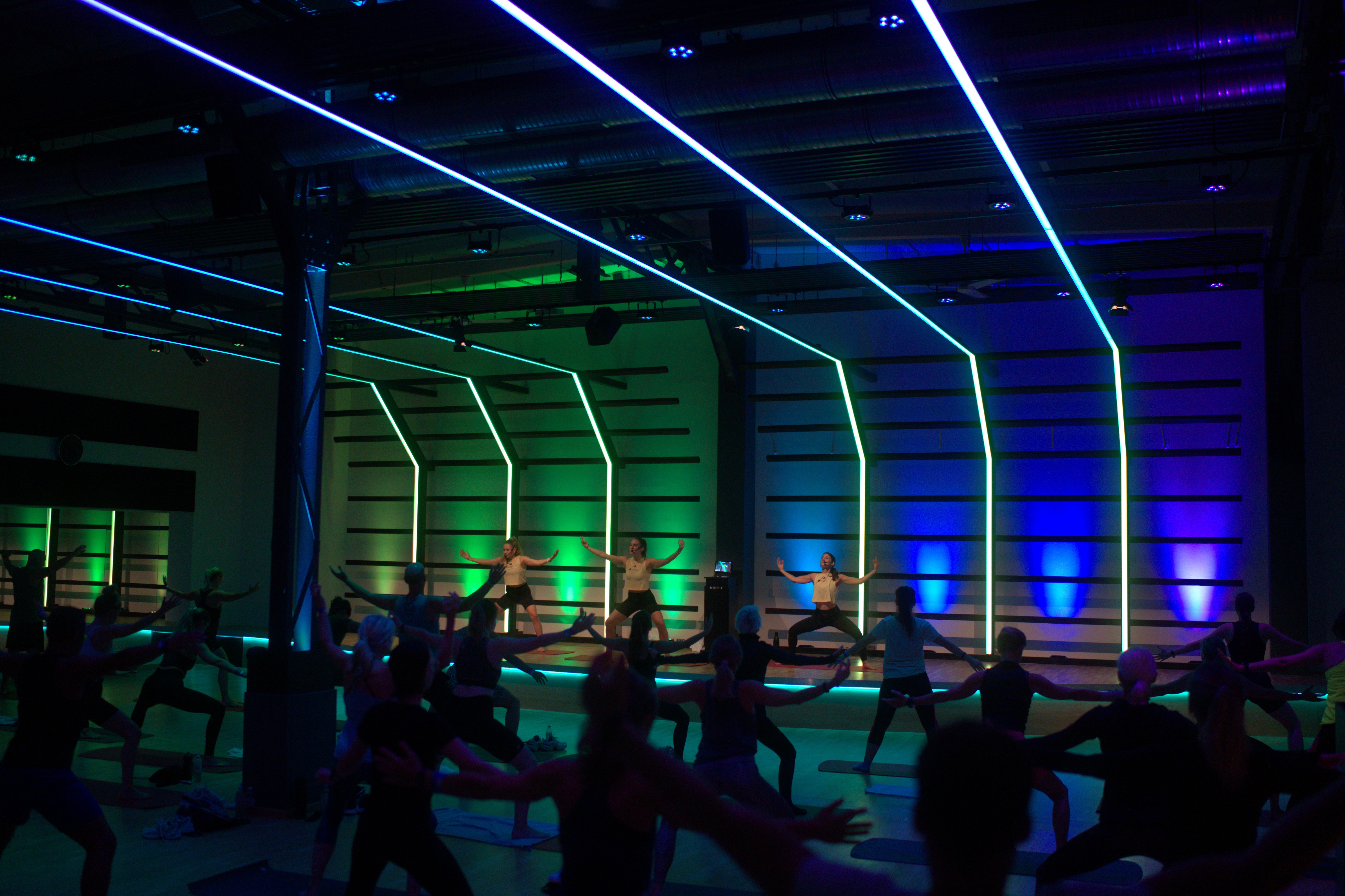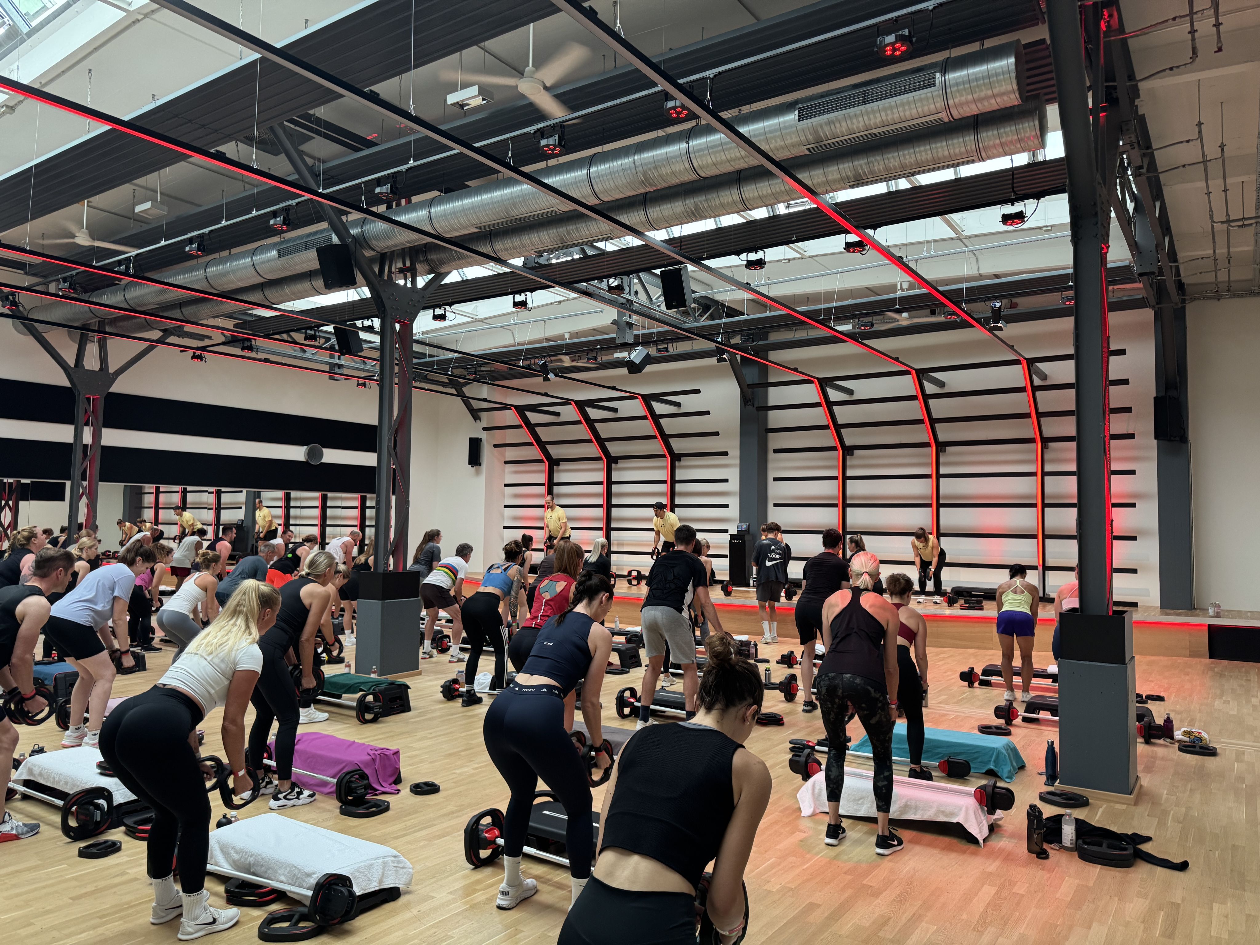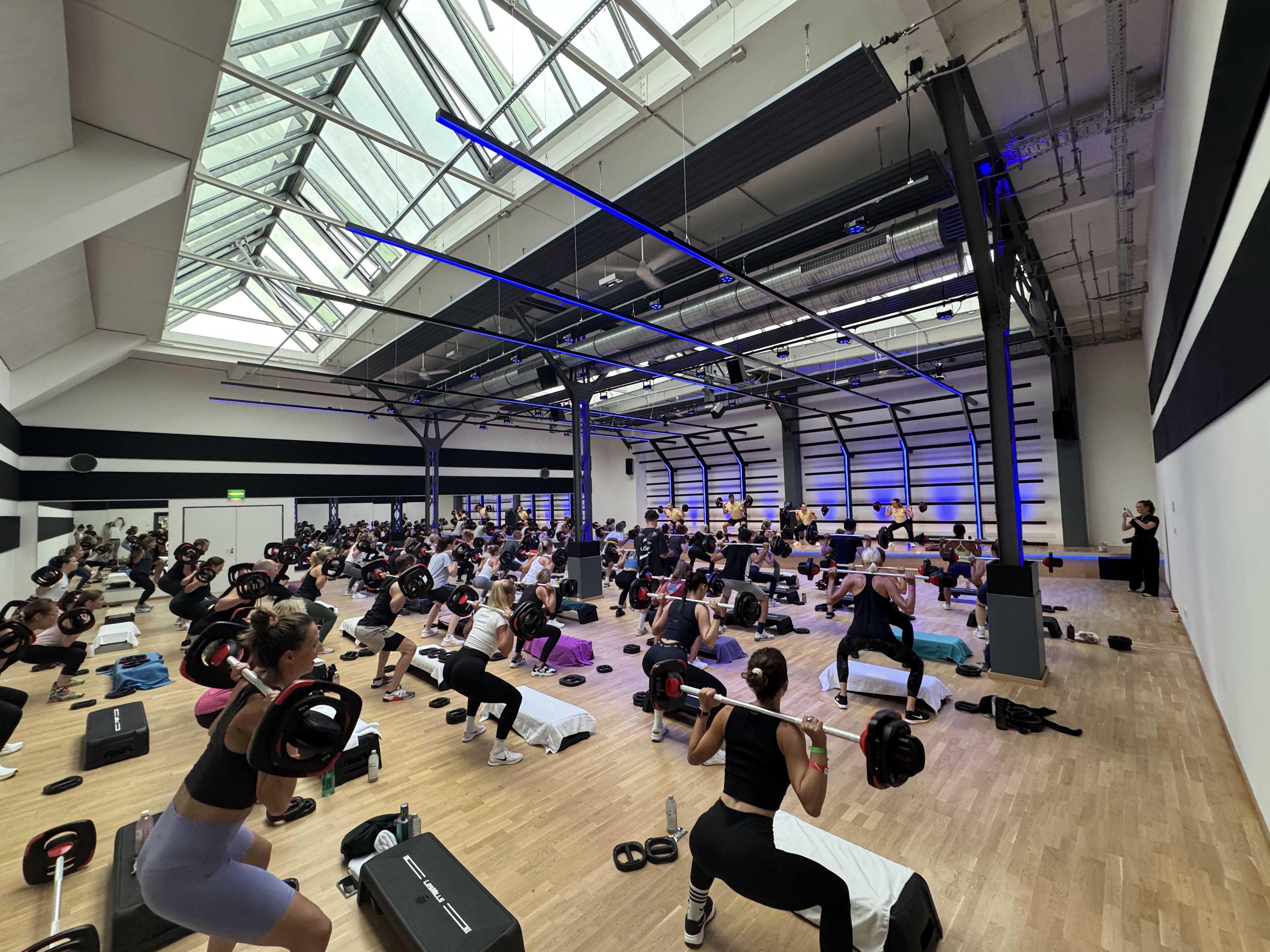 Im Rückgrat „Alter Zollhof“ wurden zwei bestehende Kursräume zu einem neuen, großzügigen Erlebnisraum zusammengeführt. Ziel war es, diesen neu geschaffenen Bereich technisch und atmosphärisch zu einem Highlight im Studio zu machen – mit industriellem Charakter, gestalterischer Klarheit und funktionaler Präzision. SOTA übernahm die Planung und Umsetzung von Audio, Licht und Akustik.